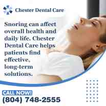 Snoring can impact both sleep quality and overall health. Identifying the underlying cause and using effective treatments for snoring can lead to better rest and improved well-being. Chester Dental Care provides customized snore treatments to help patients breathe easier and sleep more soundly. Schedule an appointment today. Call us at (804)748-2555 or email frontdesk@chesterdentalcareva.com